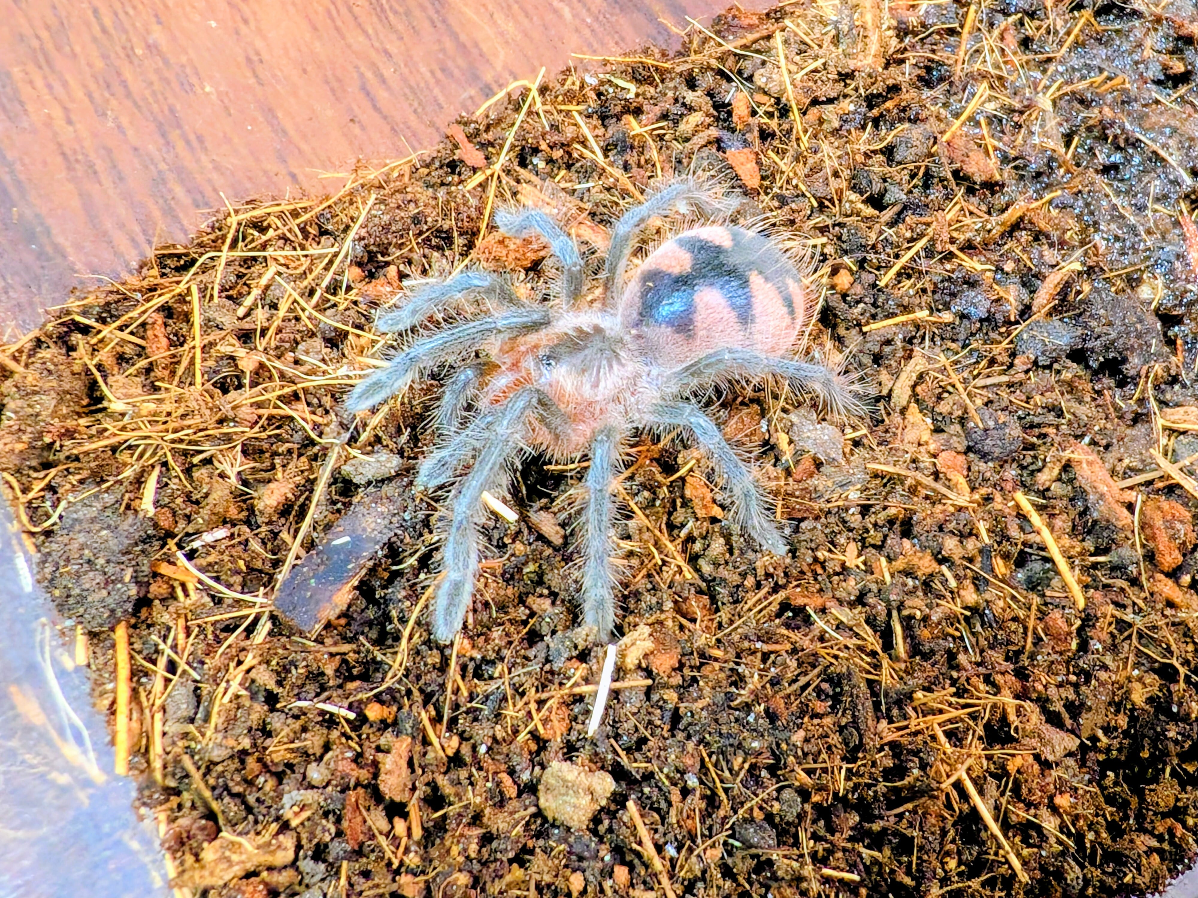 成長に伴い全身に紫〜バイオレット系の発色が現れるのが最大の特徴で、光の当たり方によって色味が変化する非常に魅力的な大型バードイーターで、あまり情報のない種です。