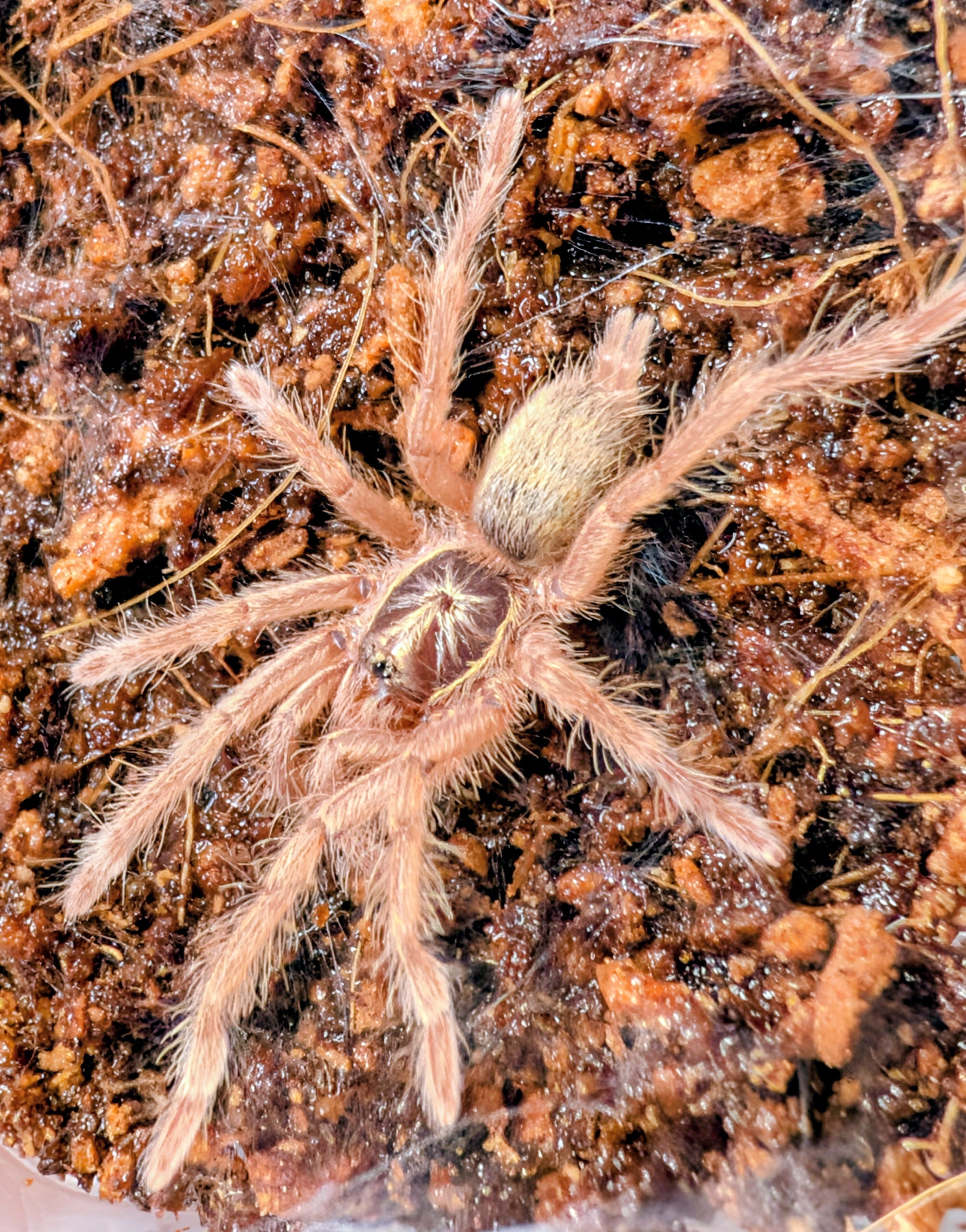 トリニダード・トバゴ原産のドワーフタランチュラ Neoholothele incei のゴールドフォーム。